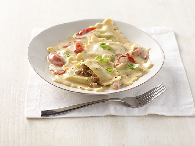Sausage Ravioli with Creamy Pesto